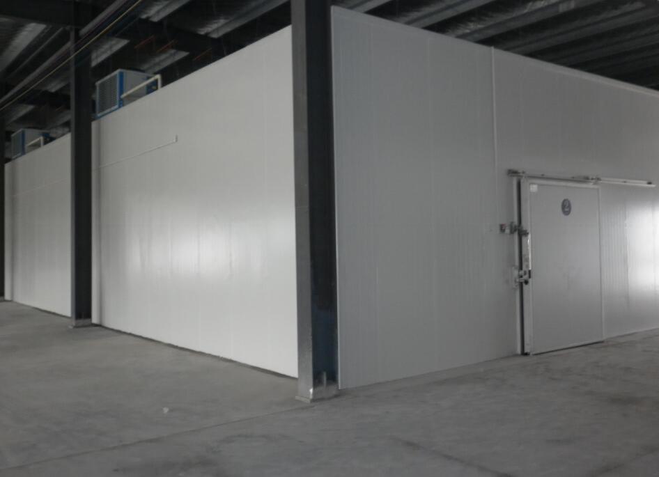 3、食品冷凍庫保溫庫板采用厚度150mm阻燃聚氨酯雙面0.426彩鋼、底部保溫板內部加裝承重木塊,頂部庫板庫內做鍍鋅方鋼支撐、J頂部庫板及鋁排重量我們自己做支撐。